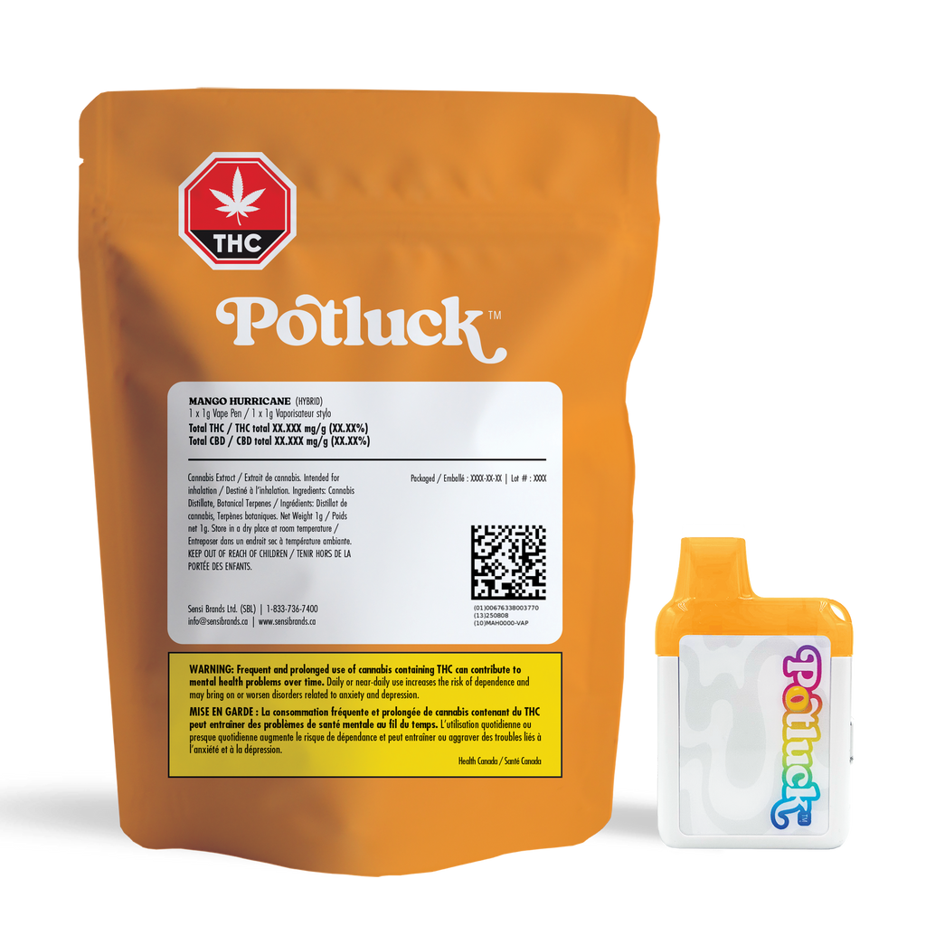 Get swept up in the storm with Mango Hurricane, a bold and flavourful 1g all-in-one disposable vape. This tropical blend crashes together ripe mango sweetness and a zesty citrus kick for a smooth, fruit-forward ride. Part of Potluck’s Tropical Collection, Mango Hurricane delivers potent effects, vibrant flavour, and the best bang for your buck—perfect for flavour chasers looking to bring on the flavour.