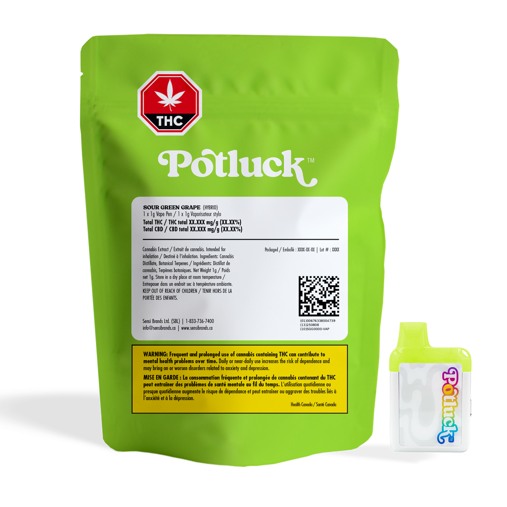 Sour Green Grape is a 1g vape from the Sweet Blitz Vape Collection featuring a tangy bite of ripe green grapes balanced with sweetness. Made with distillate, a blend of botanical terpenes, and 90% THC, it delivers a zesty and refreshing flavour with every puff!