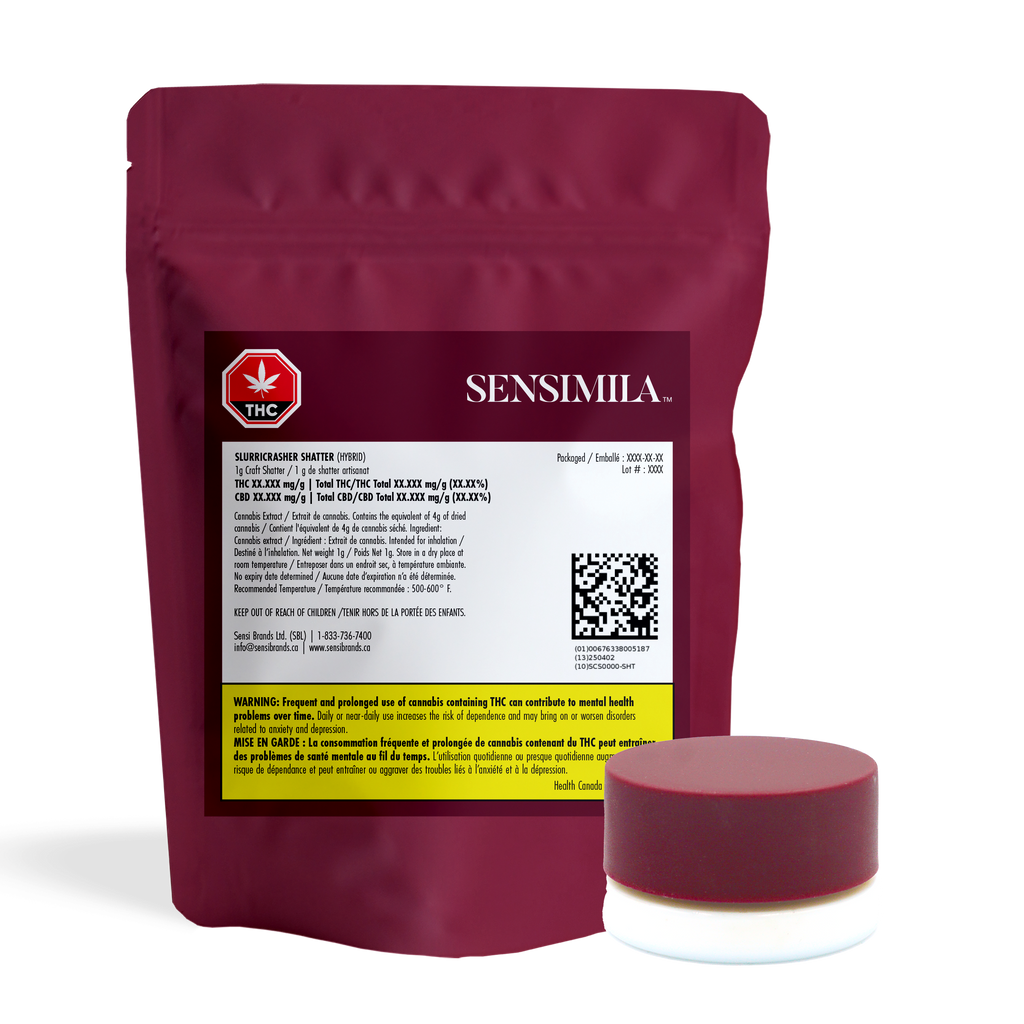 Slurricrasher Shatter by SensiMila offers premium concentrates with high terps and potency. Made from small-batch grown premium flower, this 1g drop delivers true-to-strain flavours and effects.